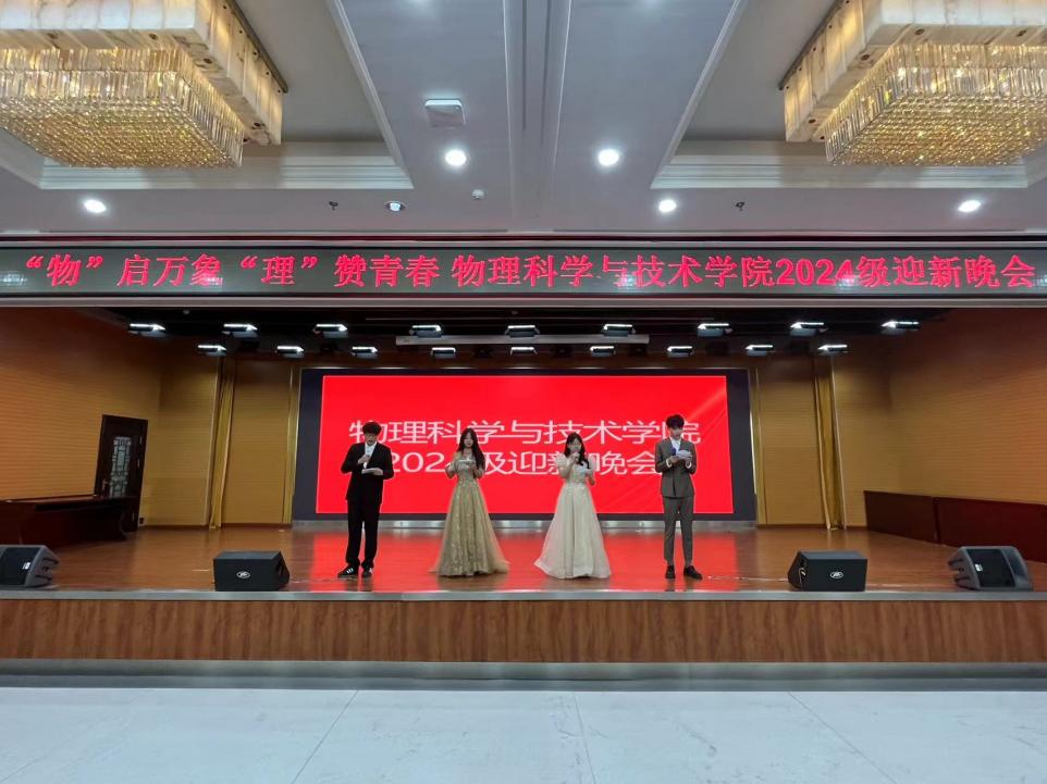 又是一年秋风送爽时,又是一轮花好月圆日。10月24日晚上6:20物理科学与技术学院于主楼一号报告厅举办2024届迎新晚会暨表彰大会。学院党总支书记周文海老师、学院党总支副书记邢有男老师、学院副院长姜子实老师、学院副院长李妍老师、学院组织员孙千然老师、2024级物理学一班学业导师杨姝荟老师、2024级物理学二班学业导师张文文老师、辅导员李佳睿老师、辅导员王鹏达老师及全体2024届本科生、研究生参加。2024级学生崔佳慧、杨翻晨与2023级学生梁晶、庞涵勋主持迎新晚会。