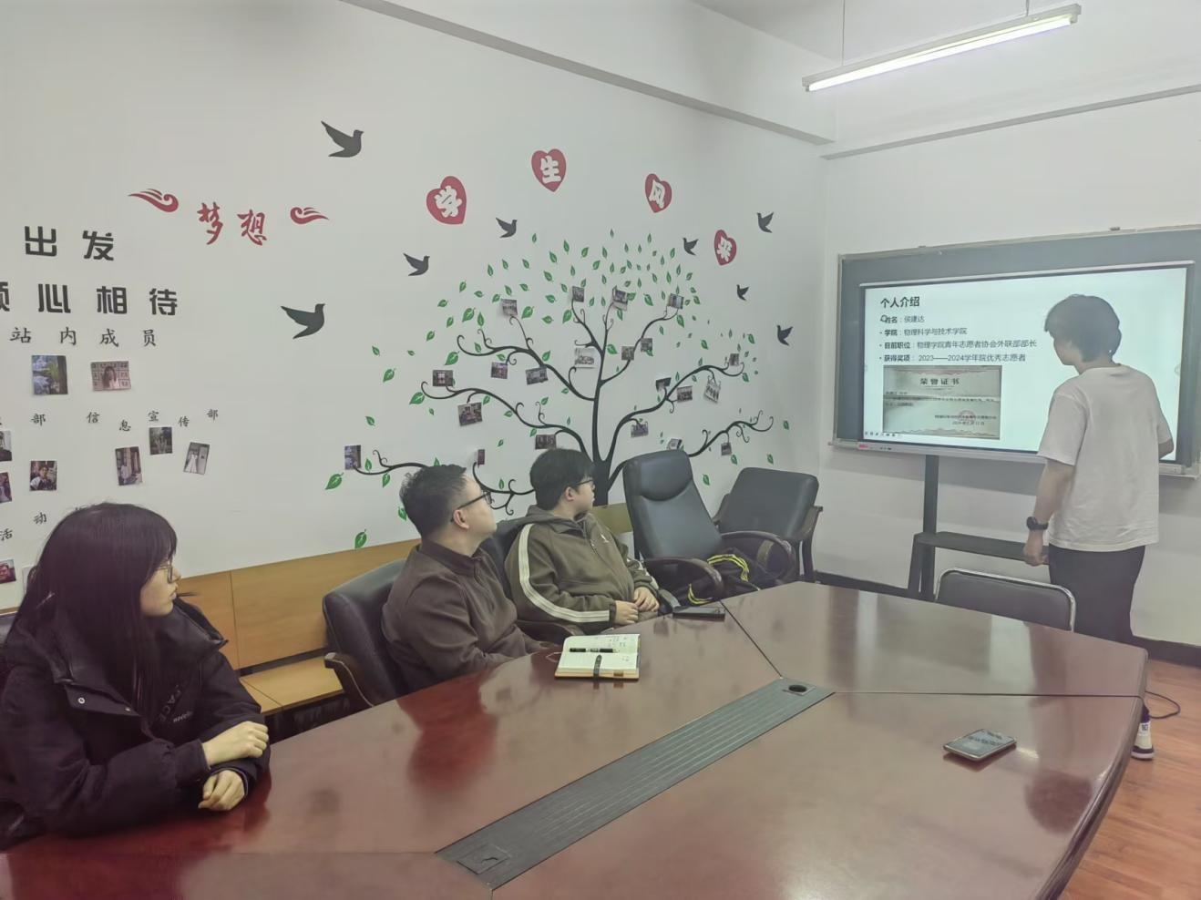 2024年11月11日下午,我院在本院会议室成功举办了院内校级优秀志愿者推举答辩会。辅导员王鹏达老师以及青协主席团出席了本次活动,六位志愿者参加答辩。
